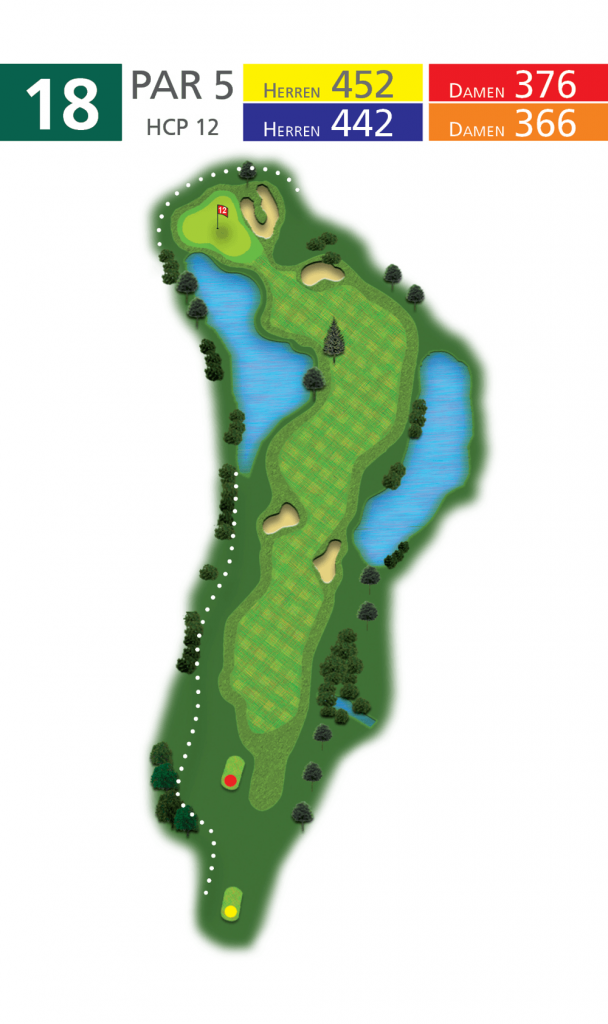 Anfangs recht unspektakulär, muß aber mit dem zweiten Schlag über einen Teich, der unmittelbar vor dem Grün endet, gespielt werden. Das Grün liegt optisch eindrucksvoll in einer schüsselartigen Mulde unterhalb des Clubhauses. Rechts neben dem Grün lauert ein über zwei Terrassen gestalteter Bunker. Die Grünböschung erinnert an ein Amphitheater und gibt den Zuschauern Gelegenheit, den eintreffenden Spielern bei den entscheidenden Schlägen zuzusehen.