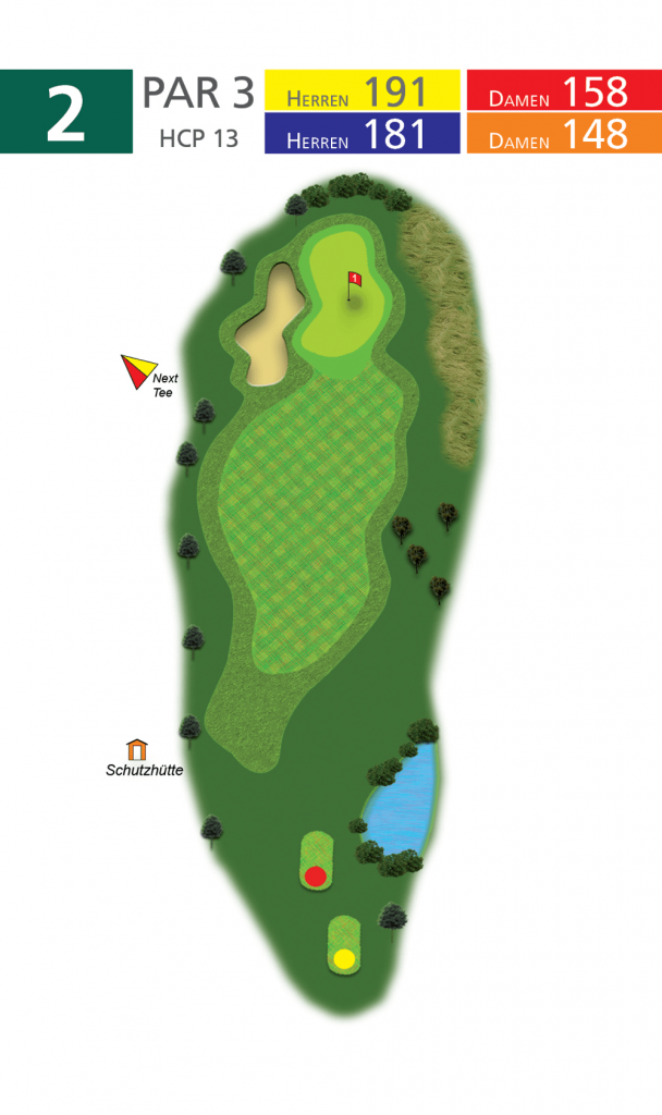 Das längste Par-3-Loch des Platzes führt hangaufwärts zum höchsten Punkt des Golfgeländes. Wegen des üblicherweise herrschenden Gegenwindes spielt sich die Bahn ziemlich lang. Der offene Grüneingang lässt daher ein flaches Anspielen zu. Ein großer Bunker lauert links am Grün auf verzogene Schläge und wird manchen Spieler dazu verleiten, den Abschlag lieber etwas nach rechts neben das Grün zu verziehen, von wo aus es auch wegen des nach rechts hängenden Grüns wesentlich einfacher ist, das Par zu retten.